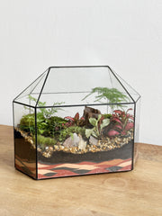 Discover the allure of a tropical oasis with our Mini Greenhouse Closed Terrarium, crafted to showcase a tiny arid landscape right in your home. This glass-enclosed terrarium displays an artful arrangement of cacti and succulents nestled among natural pebbles, offering a peaceful, easy-care miniature garden. A charming small horse figurine adds personality, making it a standout piece for your workspace, shelf, or nightstand. Its compact design and enchanting look make it the perfect gift for anyone who loves nature.